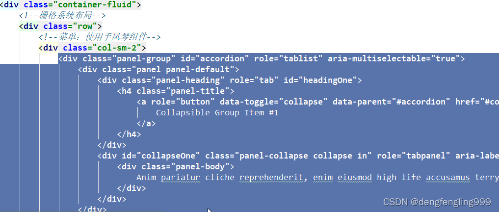 菜单栏使用手风琴组件,复制代码: