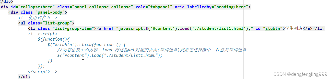 student/list1.html中心内容部分: