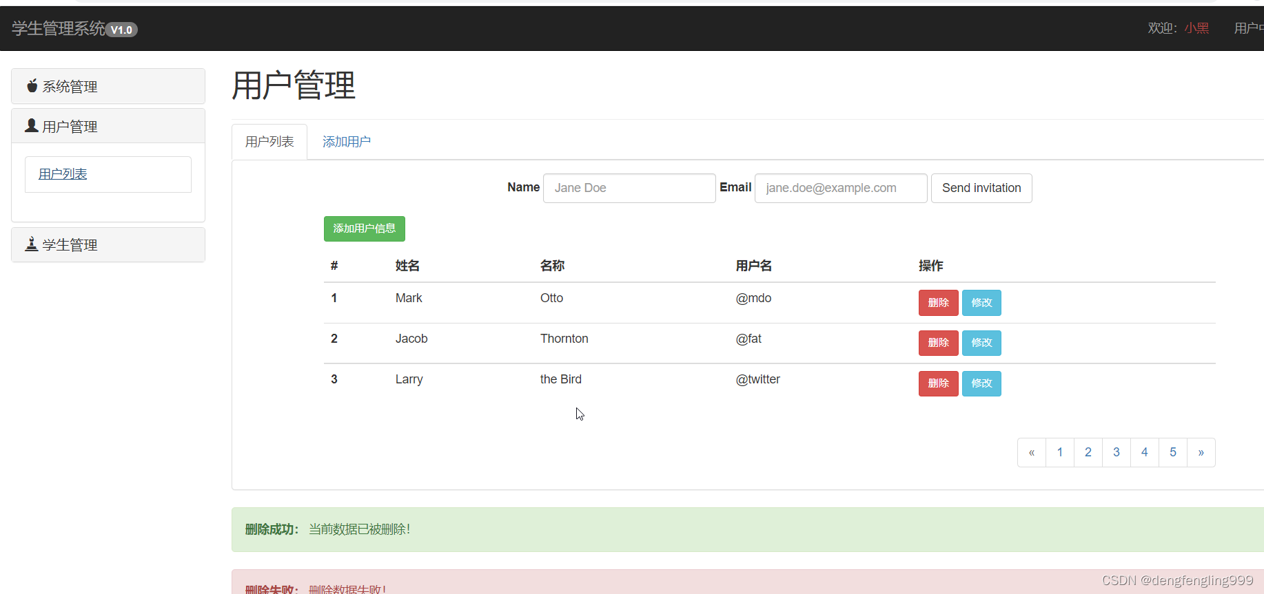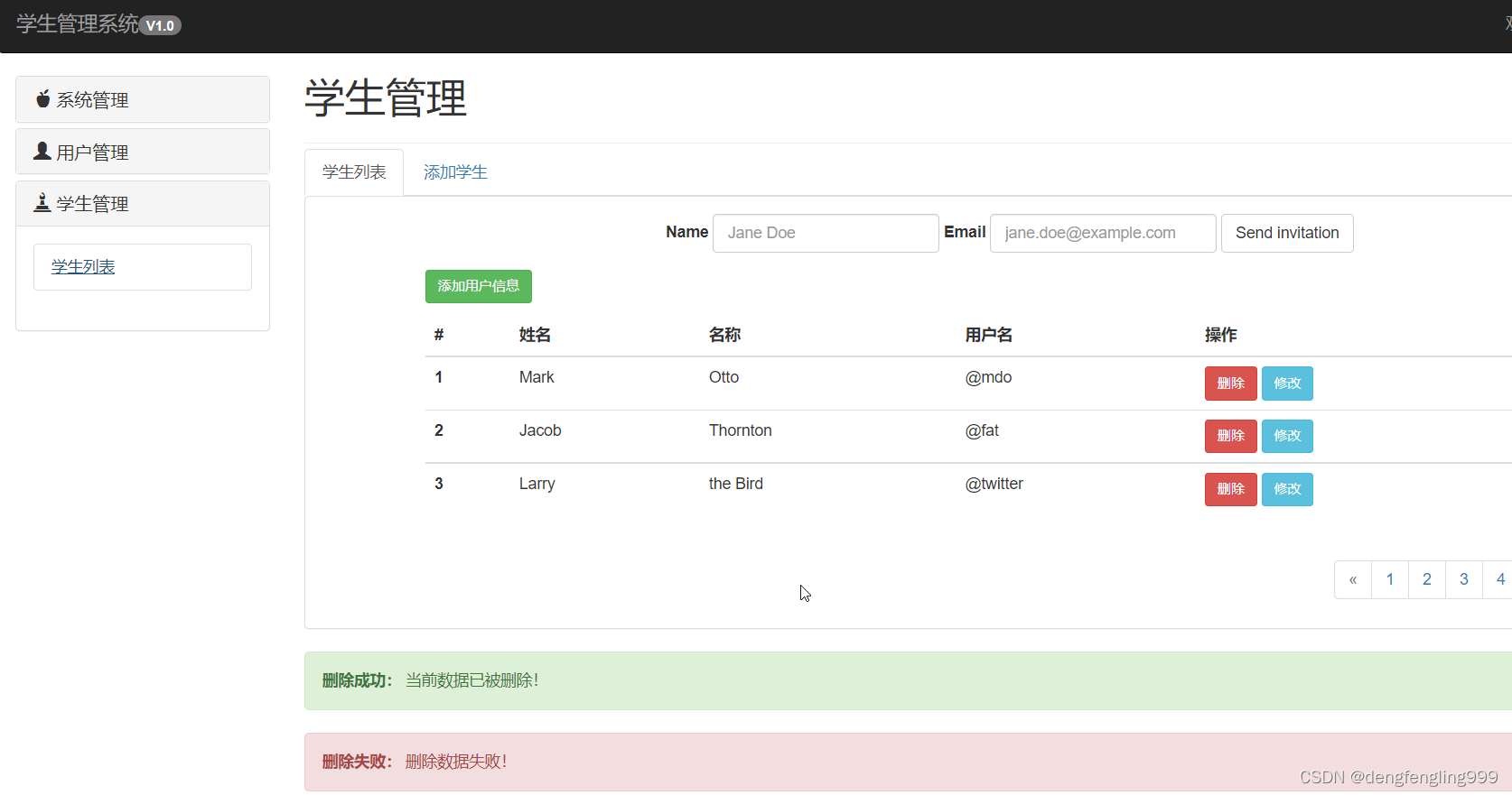 添加分页、消息提示警告框: