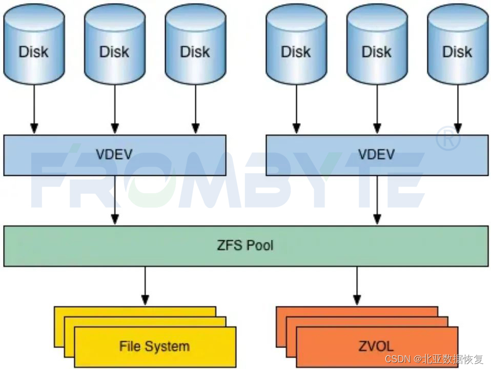 2、北亚数据恢复工程师团队很早就对zfs文件系统的底层存储结构和算法规律有过深入研究,针对zfs文件系统误删除问题具有成熟的数据恢复解决方案。根据zfs文件系统结构和元信息分析zfs文件系统盘序、使用盘数和校验盘个数等信息。