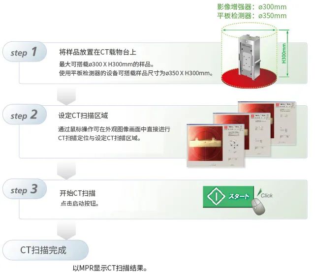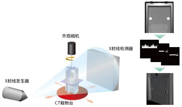 可以通过安装在载物台上方的外观相机进行CT扫描。