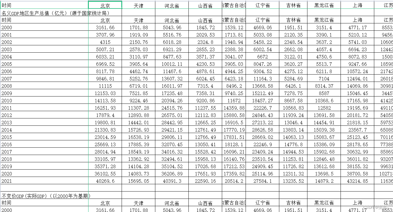 全国31省市GDP平减指数(2000-2021年)及计算步骤