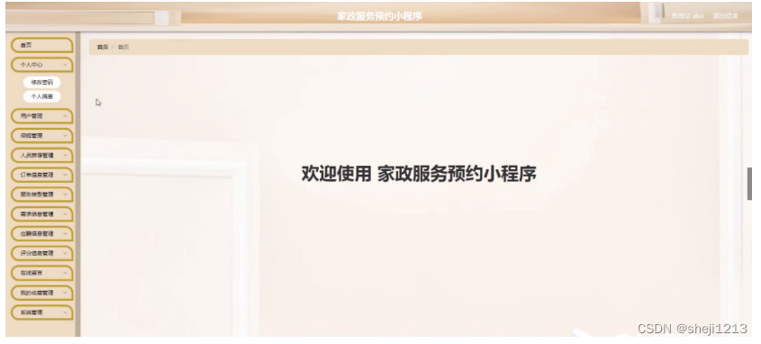 本课题要求实现一套家政服务预约小程序,系统主要包括管理员模块和用户模块、保姆模块等功能模块。