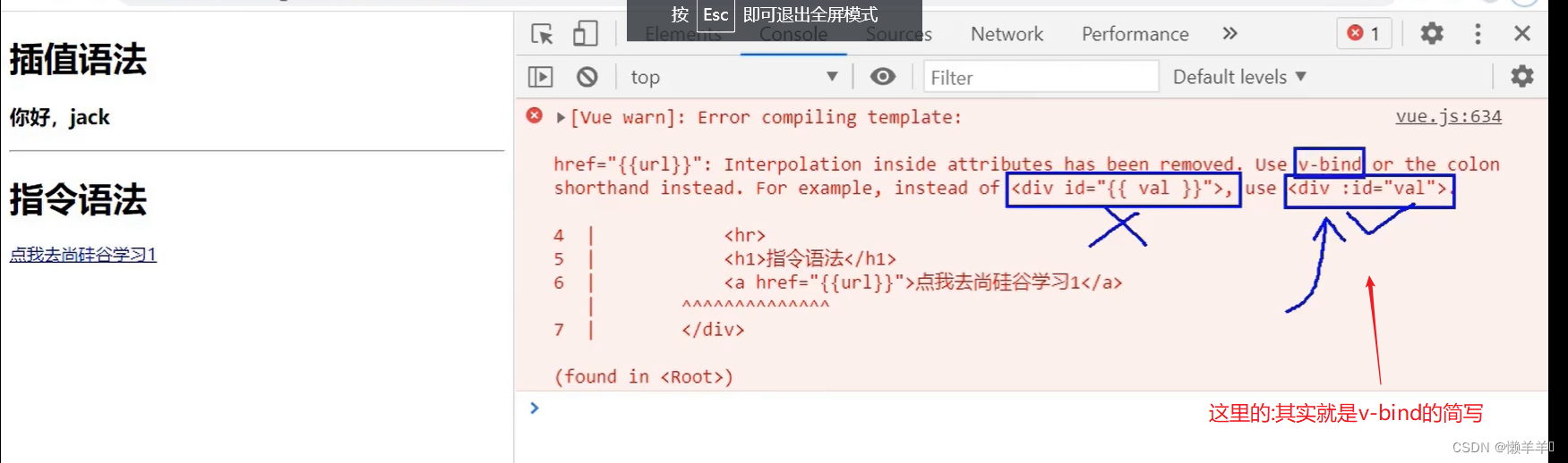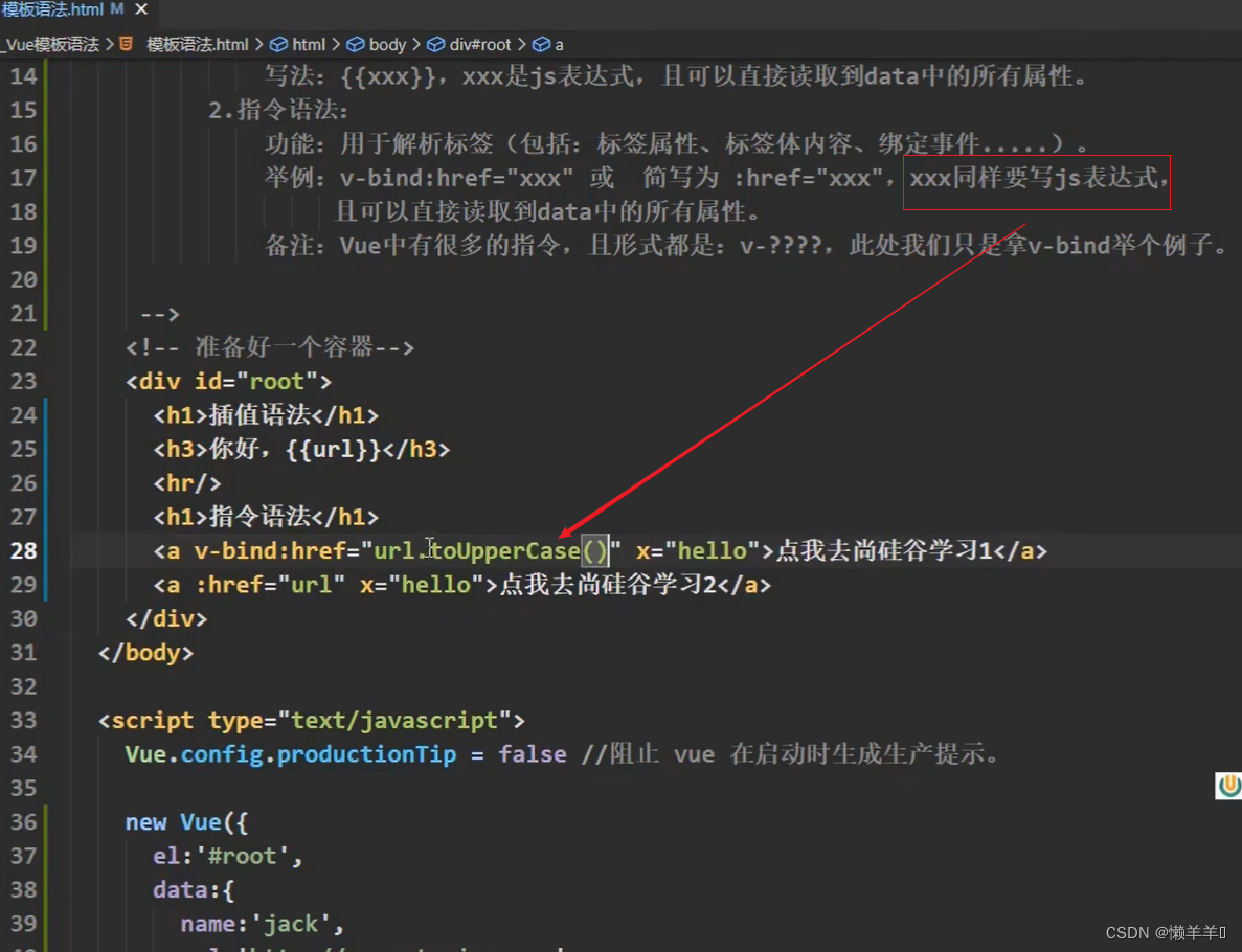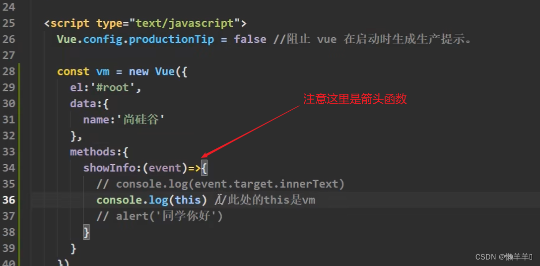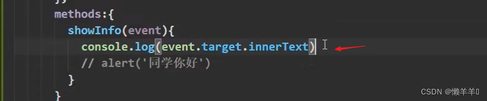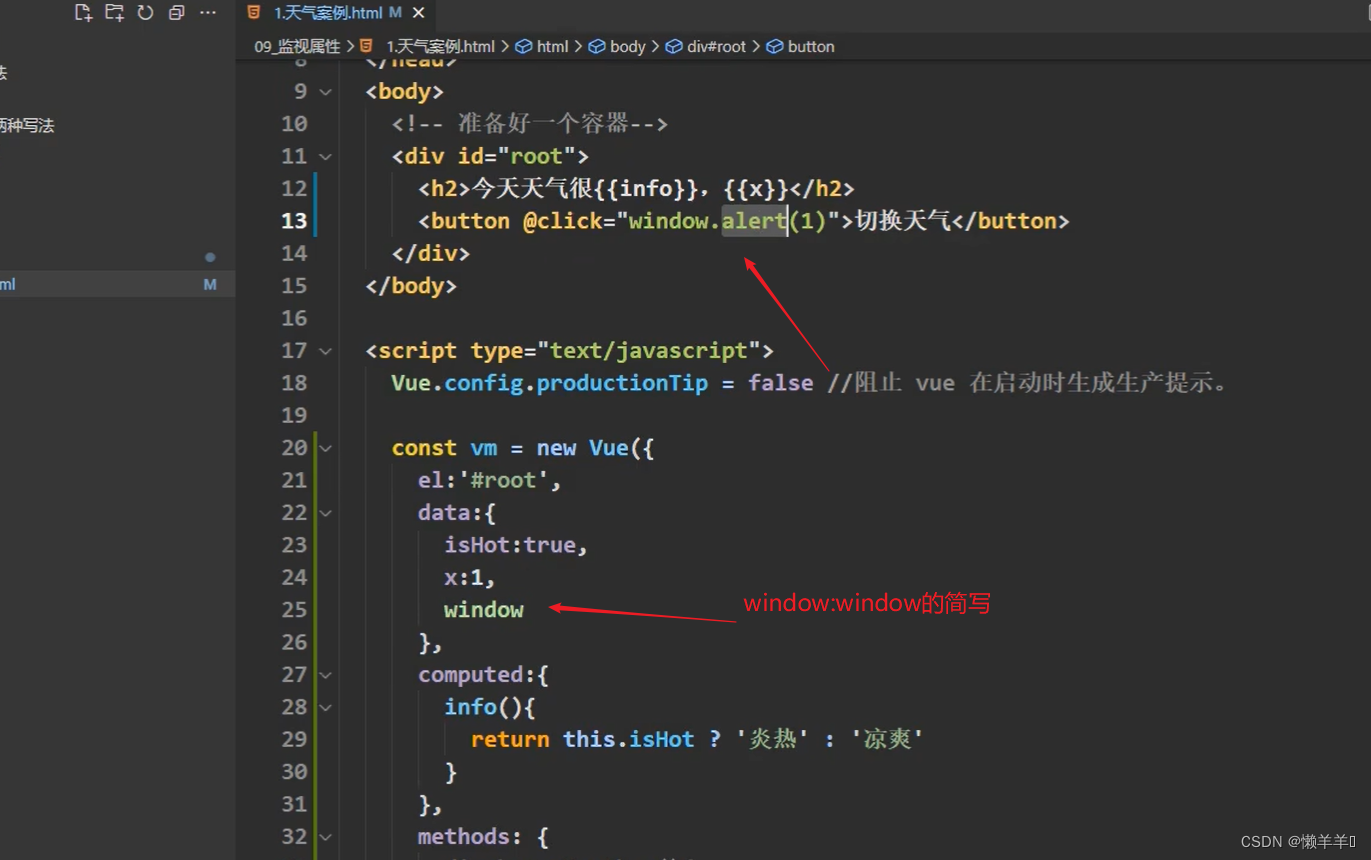 按照上面的写法肯定报错,因为vue的实例找不到alert这个方法