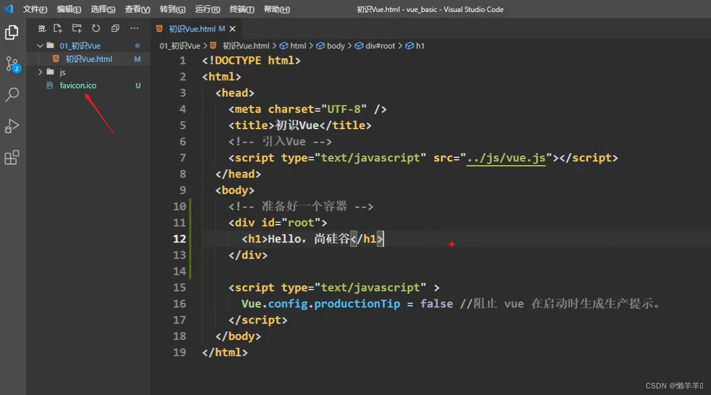 上面的这个vue的标志只所以不亮是还没有用到vue