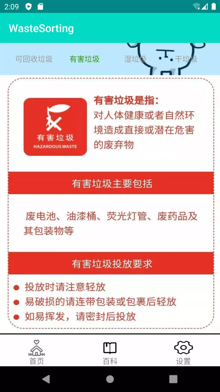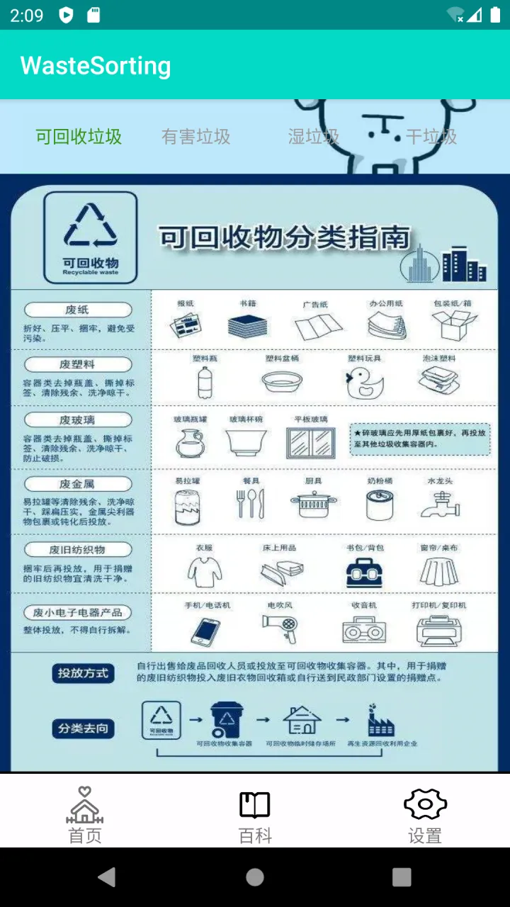 垃圾百科模块:通过页面学习四类垃圾的分类情况。