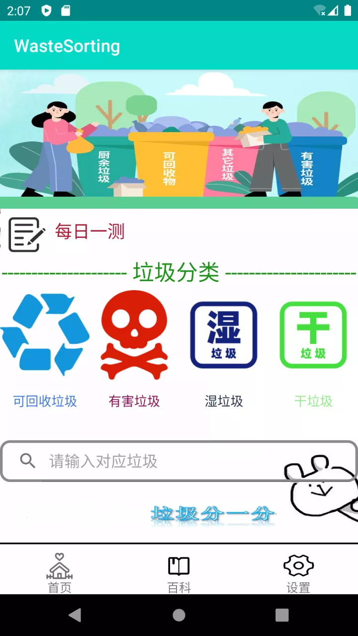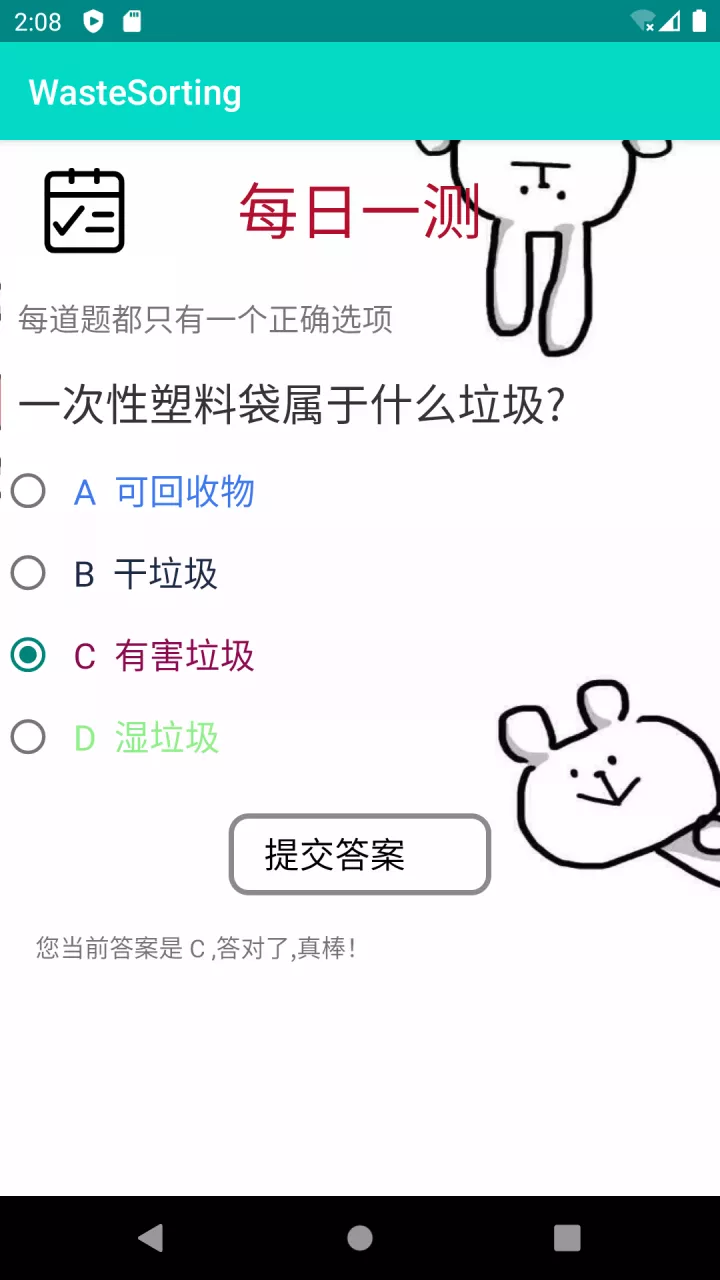 答题模块:用户通过答题的形式来辨别和加深对垃圾类别的认识。