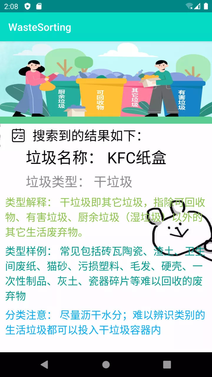 查询垃圾信息模块:通过文字搜索的方式查询对应类别垃圾的信息。