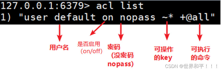 在Redis 5版本之前,Redis 安全规则只有密码控制 还有通过rename 来调整高危命令比如 flushdb , KEYS* , shutdown 等。Redis 6 则提供ACL的功能对用户进行更细粒度的权限控制 :