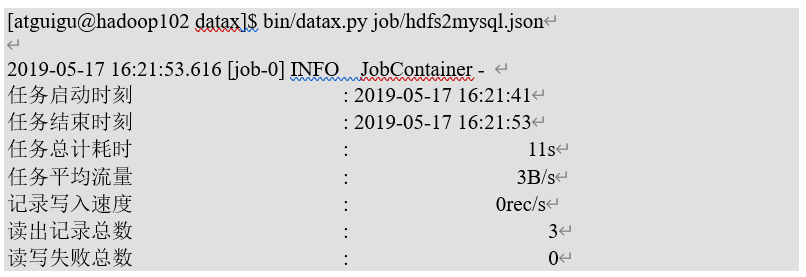 [atguigu@hadoop102 datax]$ python bin/datax.py -r hdfsreader -w mysqlwriter