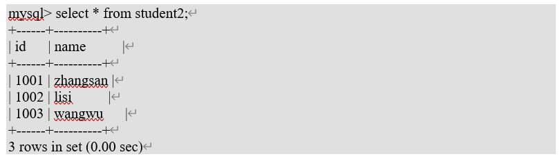 mysql> create table student2(id int,name varchar(20));