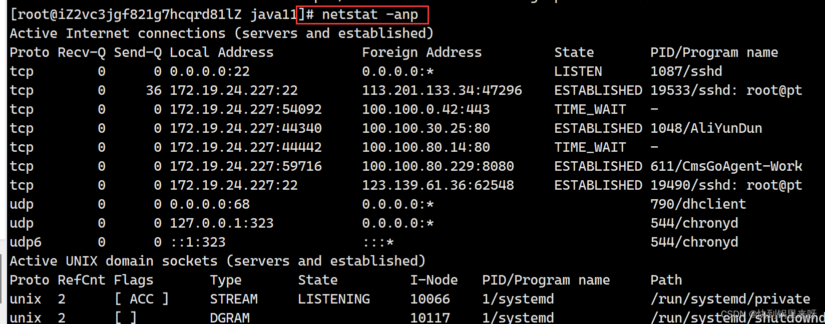 (3) netstat -anp 查看全部进程的网络状态