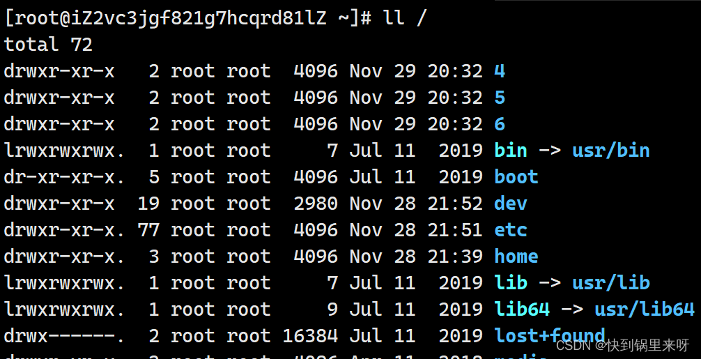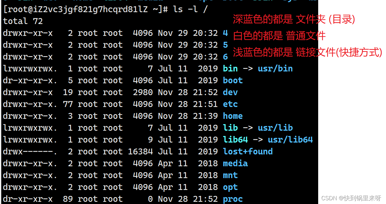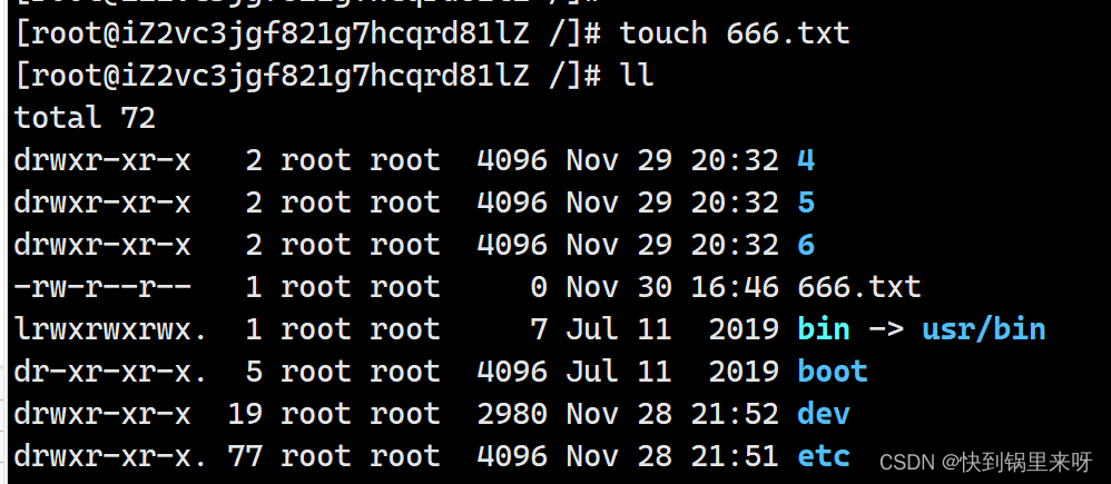 (3) ls -l / 以列表的形式展示内容(相当于 文件资源管理器)