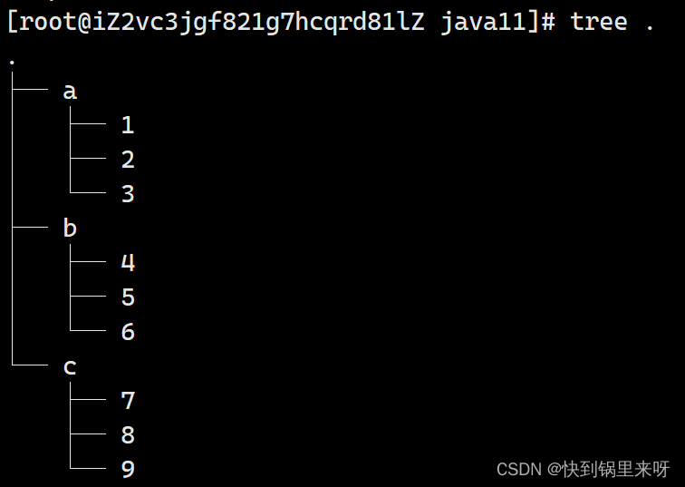 安装完成后,使用 tree . 的命令查看刚刚创建的目录结构