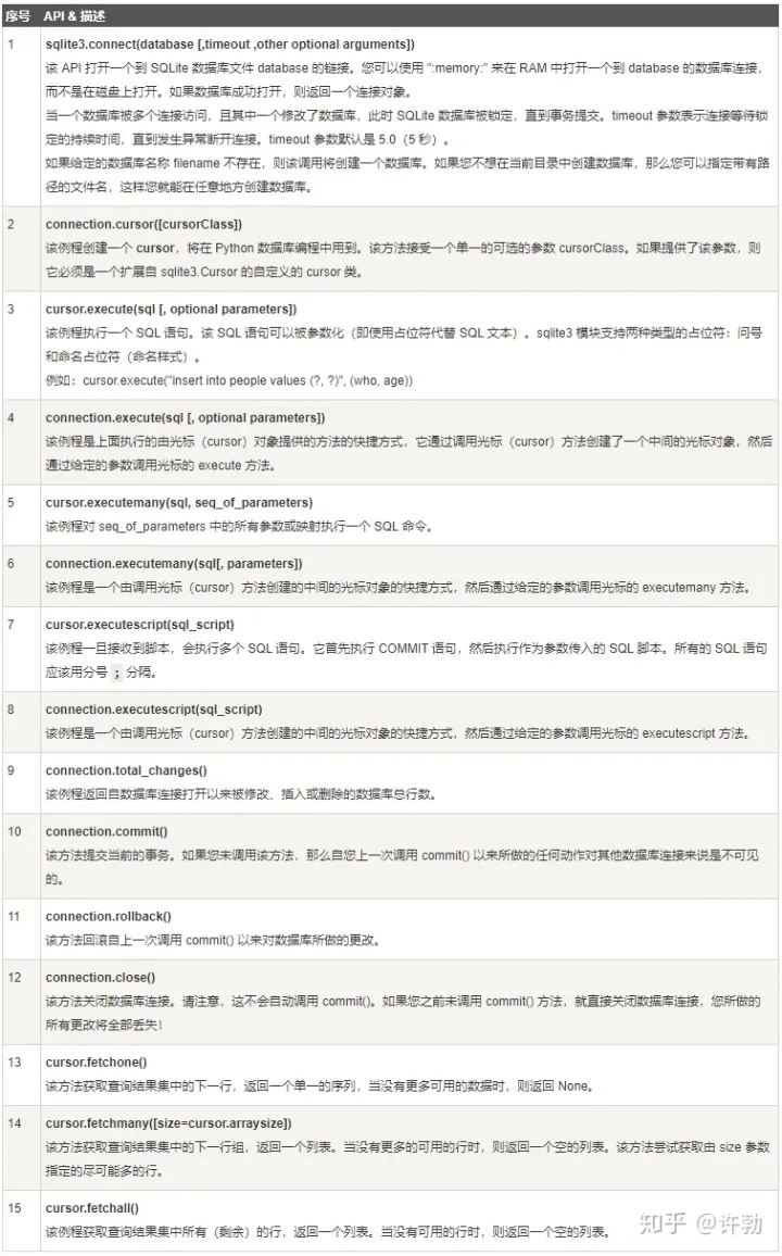 附连接connection和游标cursor的API方法: