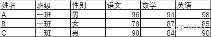 sql_text_2 = "INSERT INTO scores VALUES('A', '一班', '男', 96, 94, 98)"