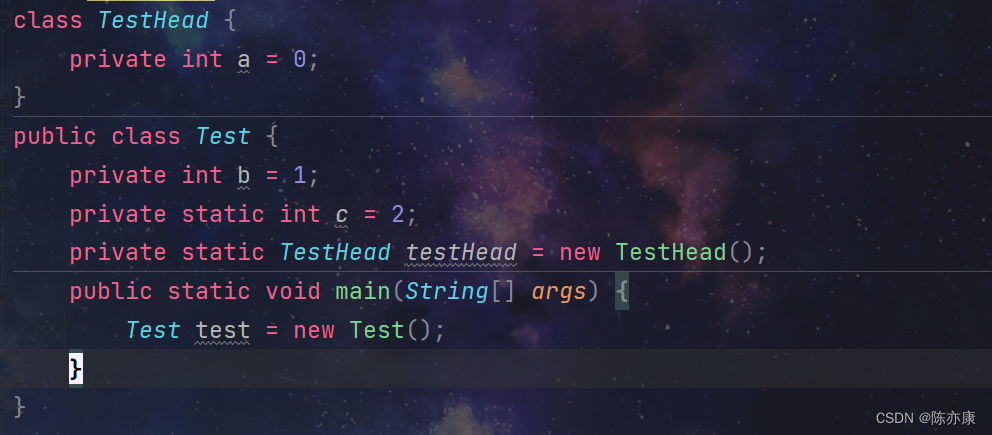 testHead这个引用是静态的,在方法区中,他new出的对象是在堆里的;