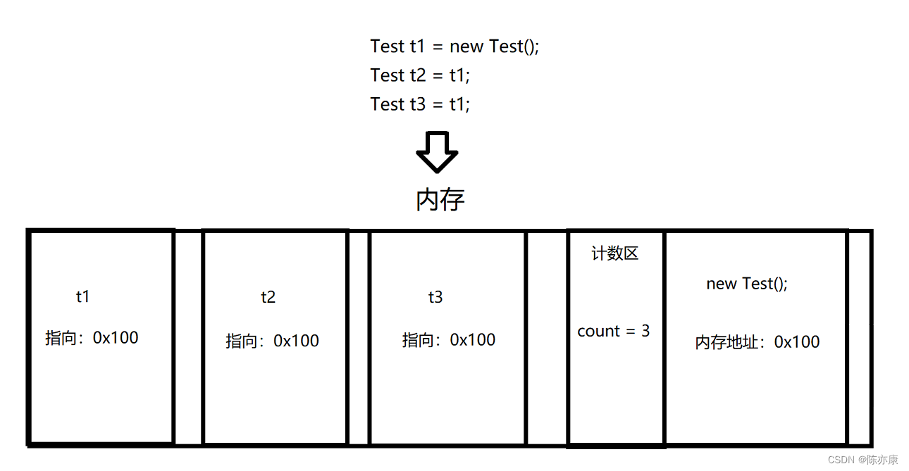 当计数器的数值为0时,就说明这个对象已经没有人能够再使用了,此时就可以进行释放;