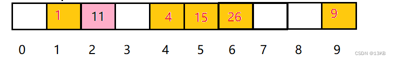 hash(11)=11%10+0*2=1,但是1的位置被占了,所以变成hash(11)+1*2,如果这个位置是空的就放进去,不是的话,i继续加。