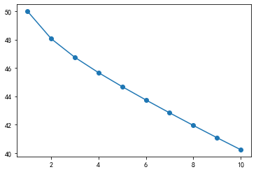 ada = AdalineGD(n_iter=15,eta=0.01) ada.fit(X_std,y)plot_decision_regions(X_std,y,ada)plt.title('Adaline - Gradient Descent') plt.xlabel('sepal length [standardized]') plt.ylabel('petal length [standardized]') plt.legend(loc='upper left') plt.show()plt.plot(range(1,len(adal.cost_)+1),adal.cost_,marker='o') ax[1].set_xlabel('Epochs') ax[1].set_ylabel('Sum-squared-error') plt.show()
