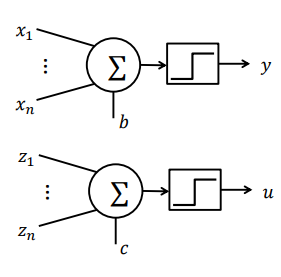 我们把这些递质看作神经元的输入,则可模仿神经元建立以下模型(M-P unit):