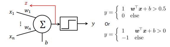 为了推导简单,我们可以将阈值b挪到等式左边并且额外定义一个权重参数 , 这样我们可以对给出更加紧凑的公式: