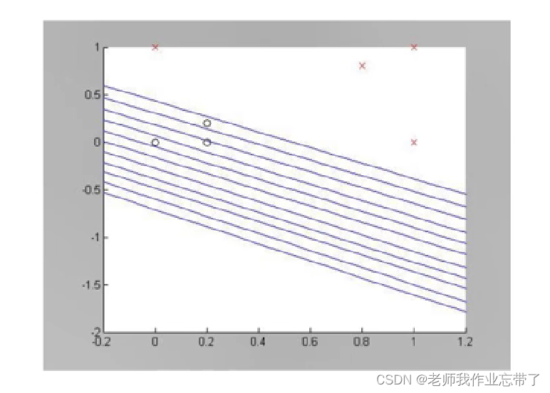 如果两个类别不能被一个线性决策界分开,我们可以设置最大训练集迭代次数(epoch)或者可容忍的错误分类样本数来停止算法的学习过程。