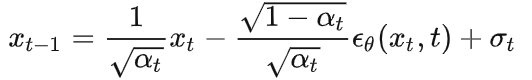 是由和t估计的噪声,是模型超参,是高斯噪声。