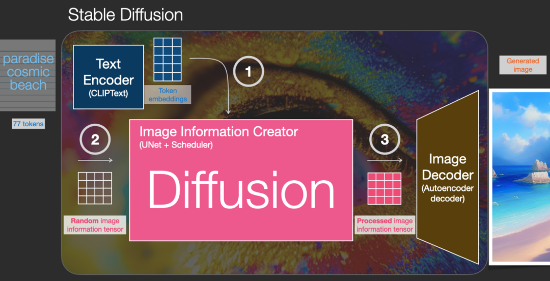 理解一种算法,很重要目的是为了落地应用,否则只是飘在空中不踏实,所以我们以Stable Diffusion模型来看看扩散模型究竟是怎么落地实现的。以下内容参考自https://jalammar.github.io/illustrated-stable-diffusion/。