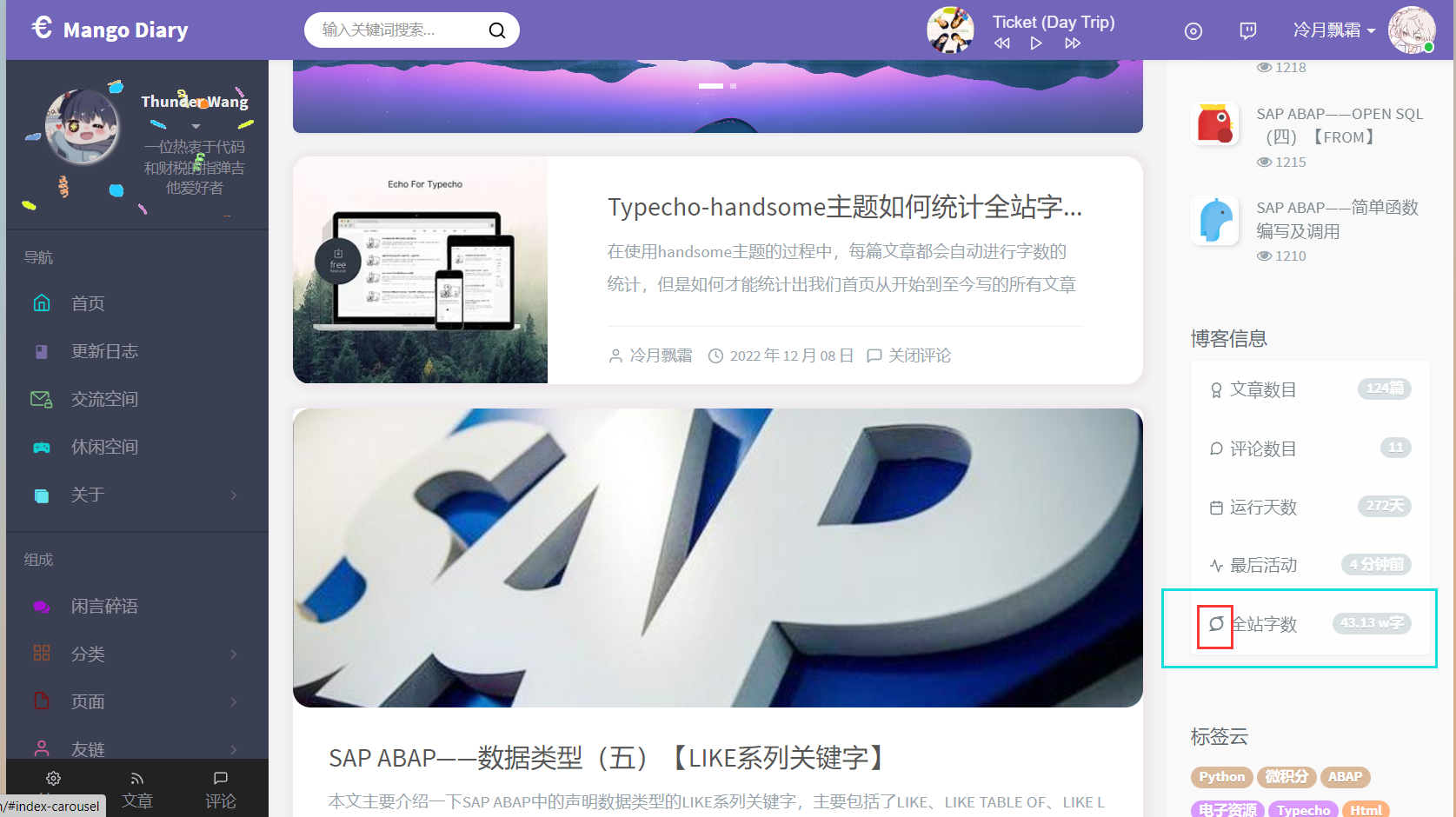 💅文章概要:在使用handsome主题的过程中,每篇文章都会自动进行字数的统计,但是如何才能统计出我们首页从开始到至今写的所有文章的字数之和呢?今天的教程告诉大家如何在Typecho-handsome主题中统计全站字数!