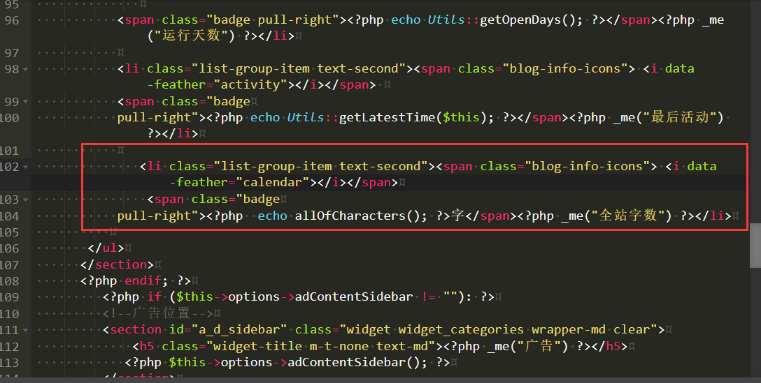 博客信息栏展示全站字数