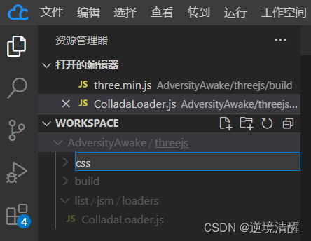 ③、在threejs目录下建立css目录