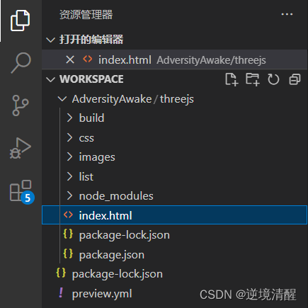 threejs目录下有五个子目录:threejs、build、css、images、list、node_modules