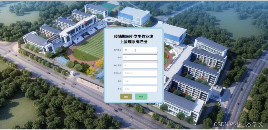 教师注册,在教师注册页面通过填写教师账号,密码,确认密码,教师姓名,年龄,手机等信息进行注册操作,如图5-2所示。