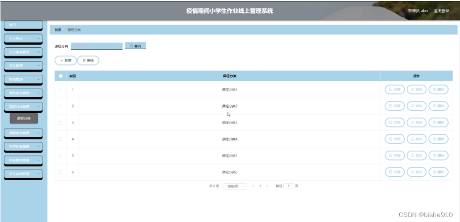 课程分类管理,在课程分类管理页面可以对索引,课程分类等内容进行详情,修改和删除等操作,如图5-9所示。