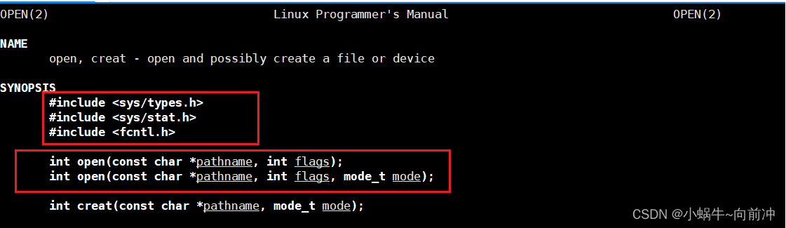 2、int open(const char *pathname, int flags, mode_t mode);