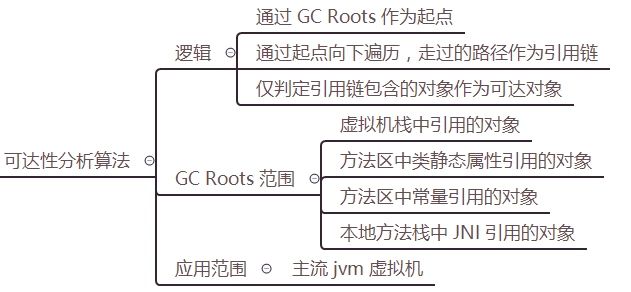 引用计数法,思路很简单,但是如果出现循环引用,即:A引用B,B又引用A,这种情况下就不好办了,所以JVM中使用了另一种称为“可达性分析”的判断方法: