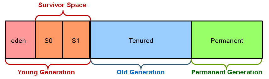 将内存分成了三大块:年青代(Young Genaration),老年代(Old Generation),永久代(Permanent Generation),其中Young Genaration更是又细为分eden,S0,S1三个区。