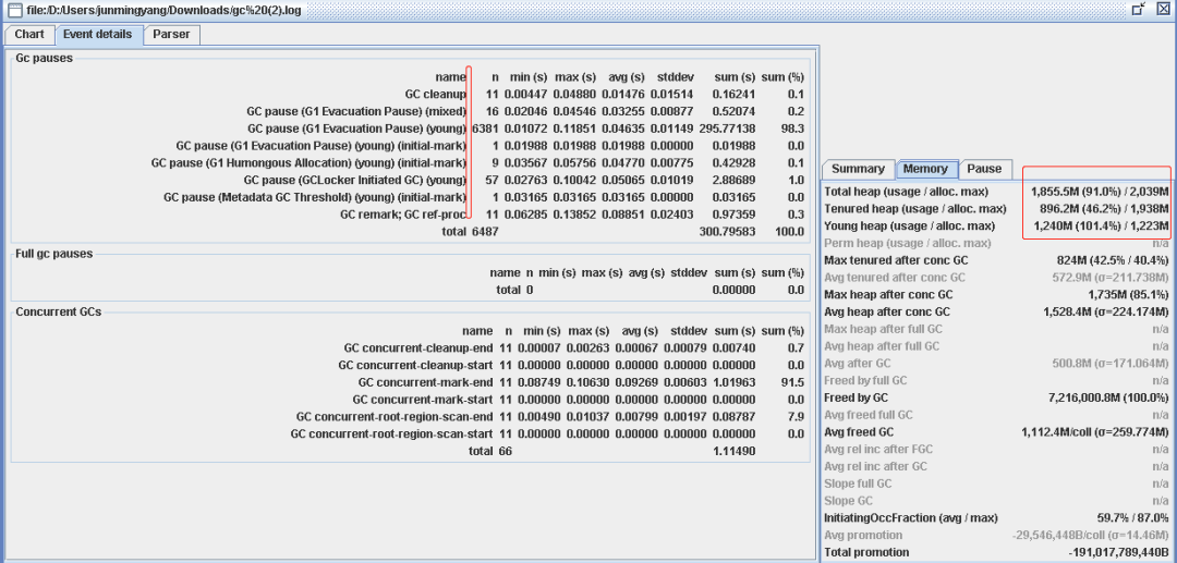 GCViewer可以很方便的统计出GC的类型,次数,停顿时间,年青代/老年代的大小等,还有图表显示,非常方便。