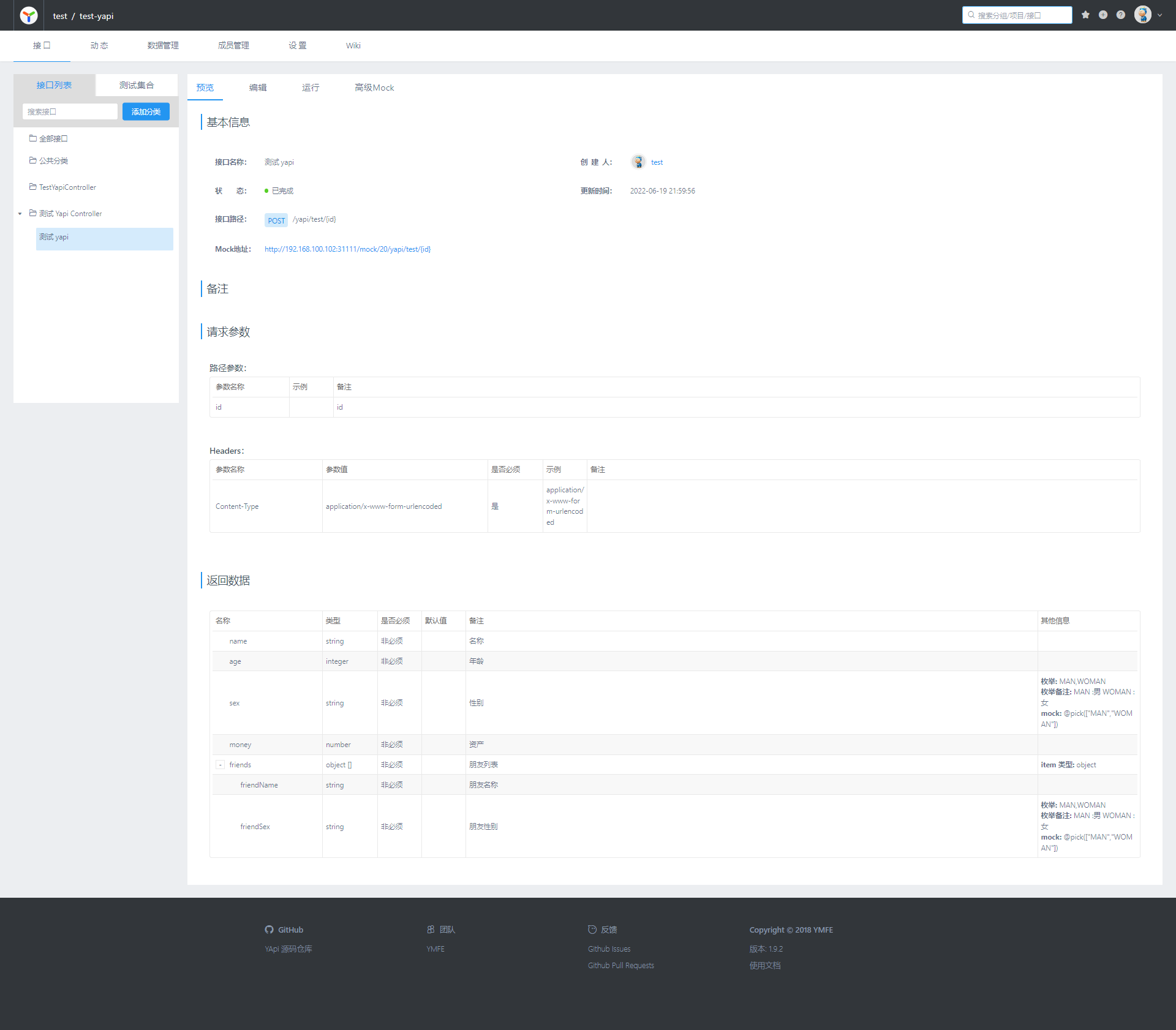 经过上面四步,我们的文档就一键同步到了 YApi , 以后如果controller中接口有变动则再次执行上文中的【第四步】即可同步最新接口到 YApi了