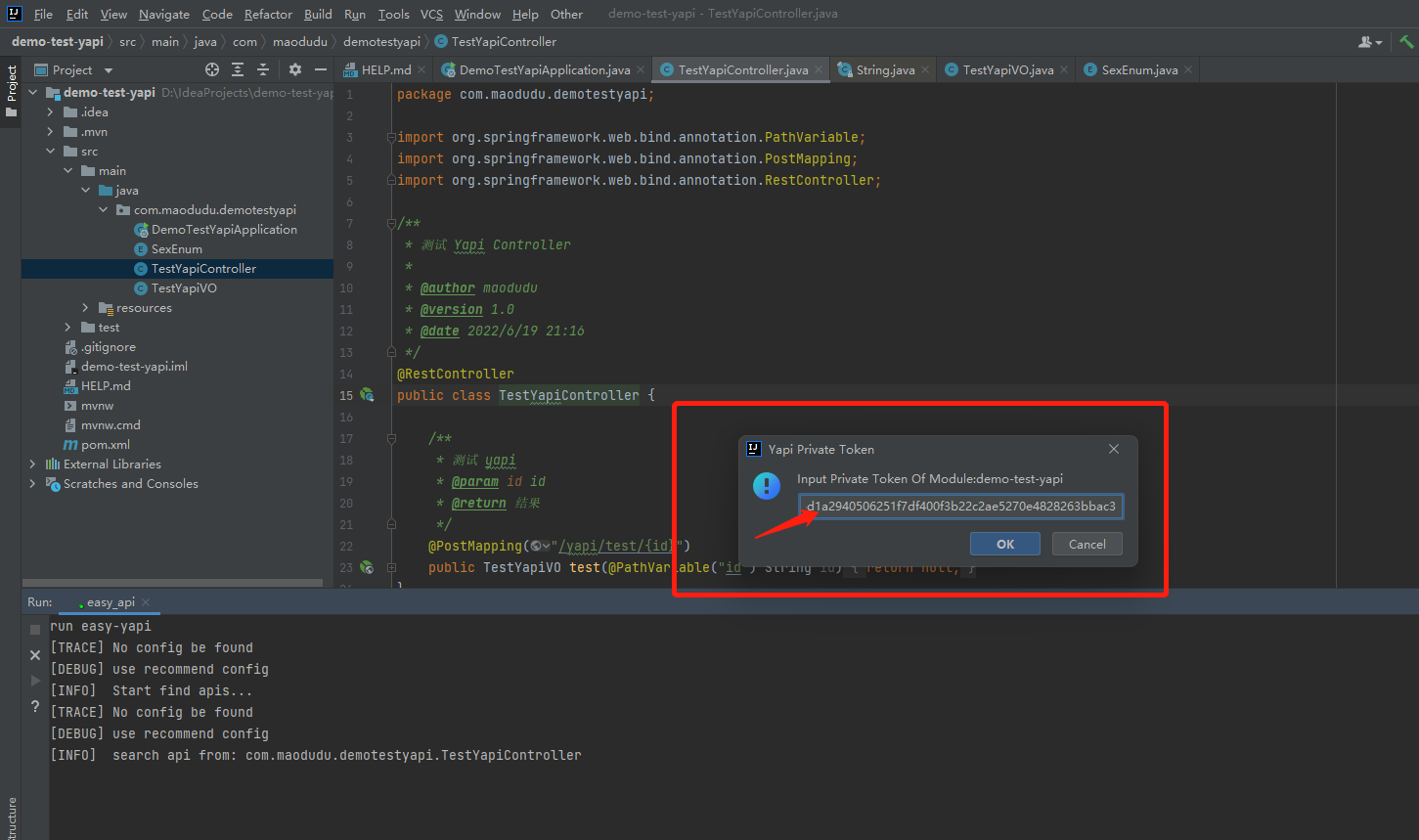 public class TestYapiController {/*** 测试 yapi* @param id id* @return 结果*/@PostMapping("/yapi/test/{id}")public TestYapiVO test(@PathVariable("id") String id){return null;}