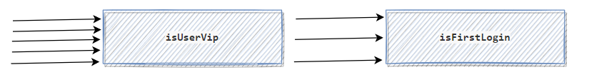 假设有5个请求过来,isUserVip判断通过的有3个请求,isFirstLogin通过的只有1个请求。那么以上代码,isUserVip执行的次数为5次,isFirstLogin执行的次数也是3次,如下: