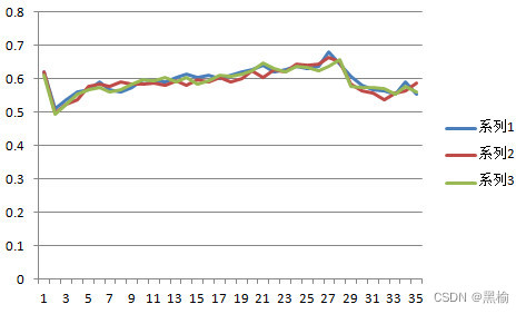 再让n分别等于5,10,15,20,25,…,550,分别计算(0,0)(1,1)被分为A和B的比例。得到表格