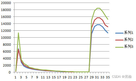 当n>320以后网络性能变得不再稳定,不统计,则这个网络的的收敛过程被一个峰值一个谷值分成3部分,2-5寻求平衡,5-320平衡,n>320,超出性能极限。