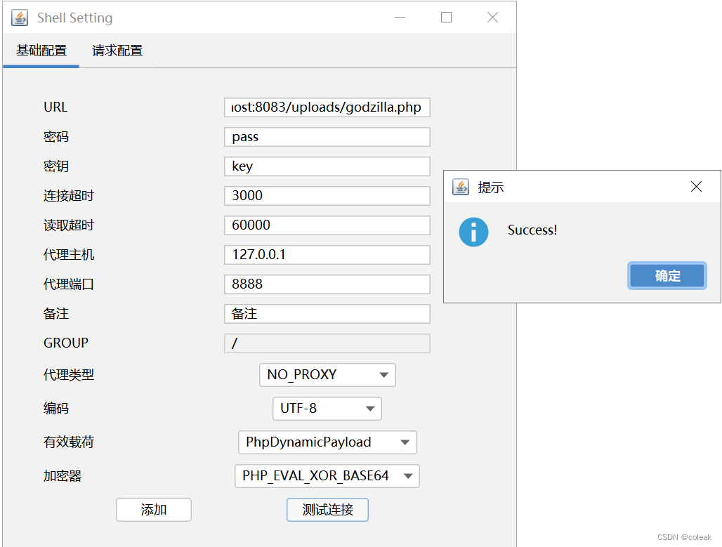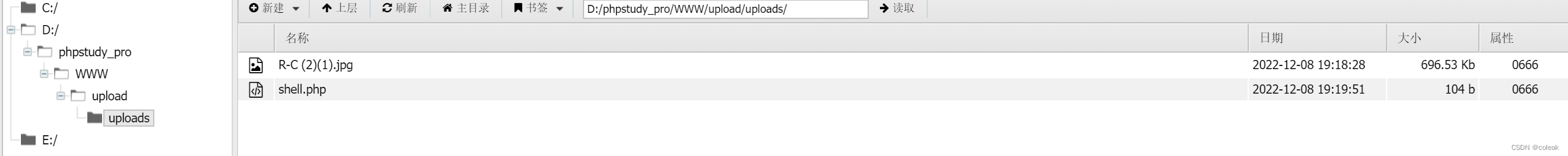 找到上传路径后通过给coleak赋值执行系统命令