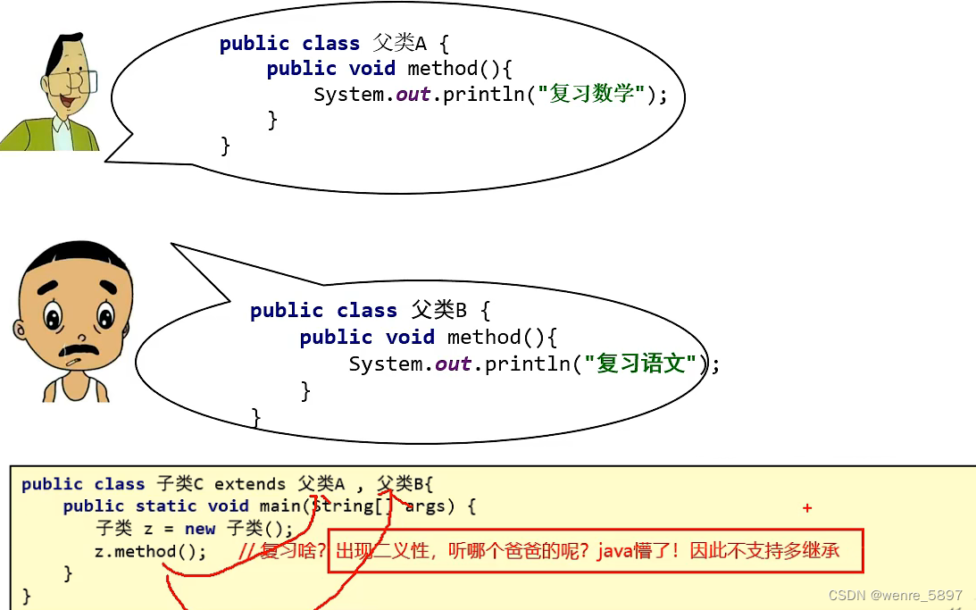 就是你 不可以继承多个爸爸;但是你可以继承你爸的,你爸可以继承你爷爷的,多层继承;