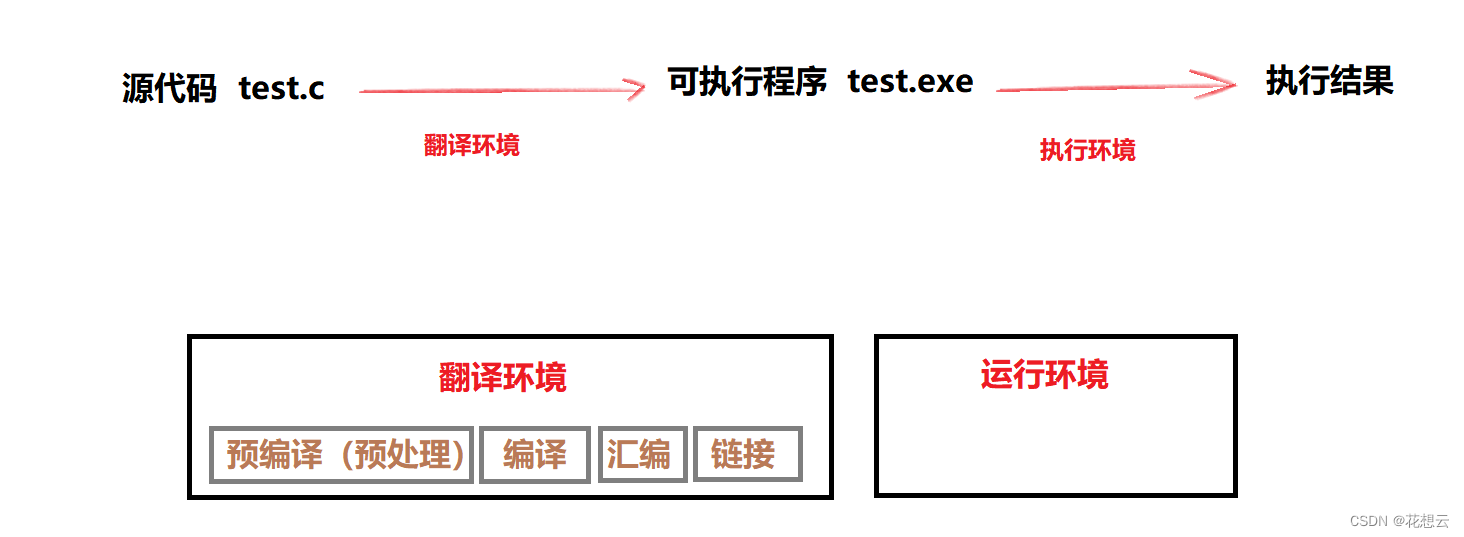 1.翻译环境:在这个环境中,源代码被翻译成为可执行的机器指令。
