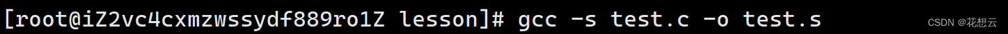gcc -s 在 编译完成之后就停下来,结果保存在test.s中。