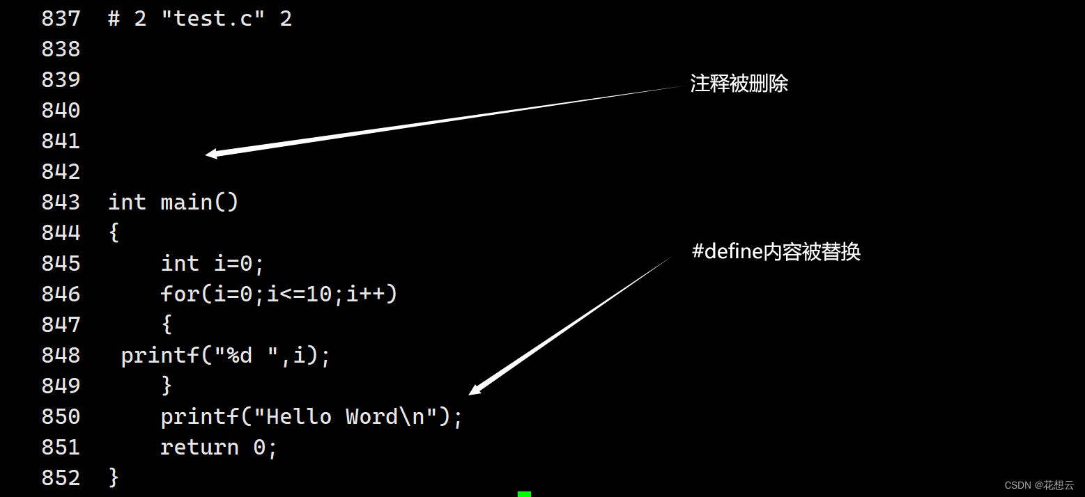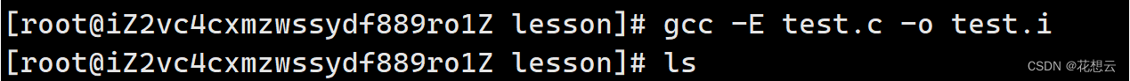 gcc -E 在预处理完成之后就停下来,预处理之后产生的结果都放在test.i的文件中。