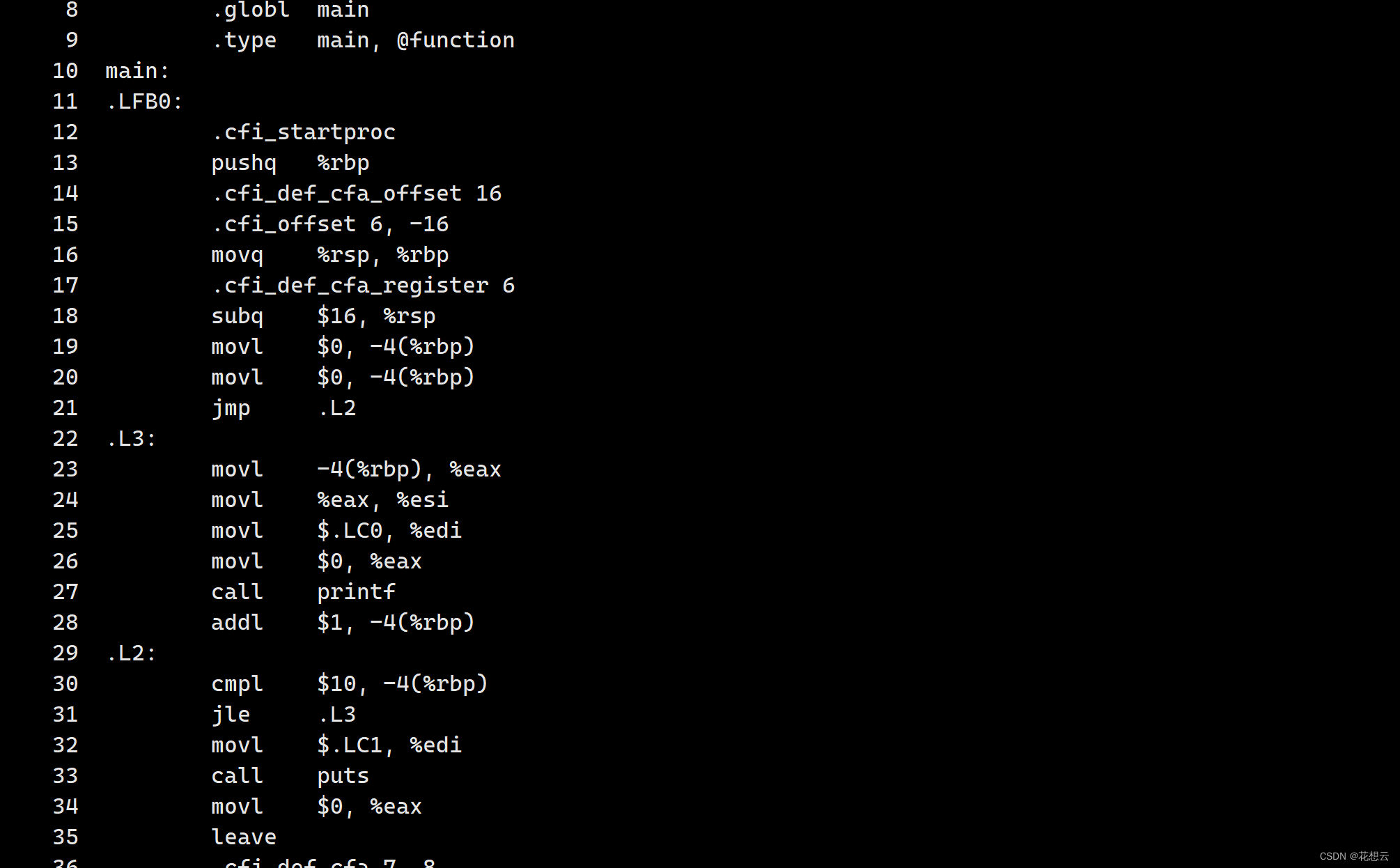 把C语言代码转化为了汇编代码。包含: